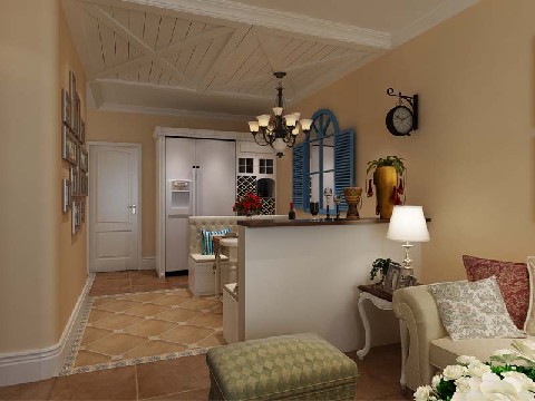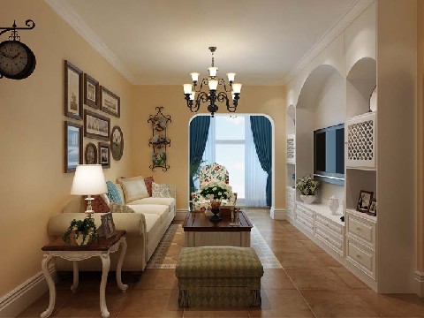 鹅暖黄的墙面,铁艺灯、照片墙、藤制置物架,蔚蓝色的软装搭配,马蹄形床,拱门,让这个家里即浪漫有温馨,它永远都是主人心灵深处最温馨的港湾。